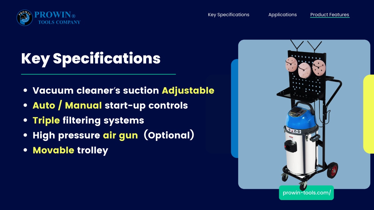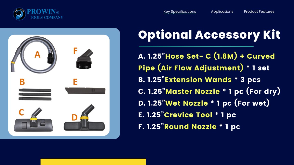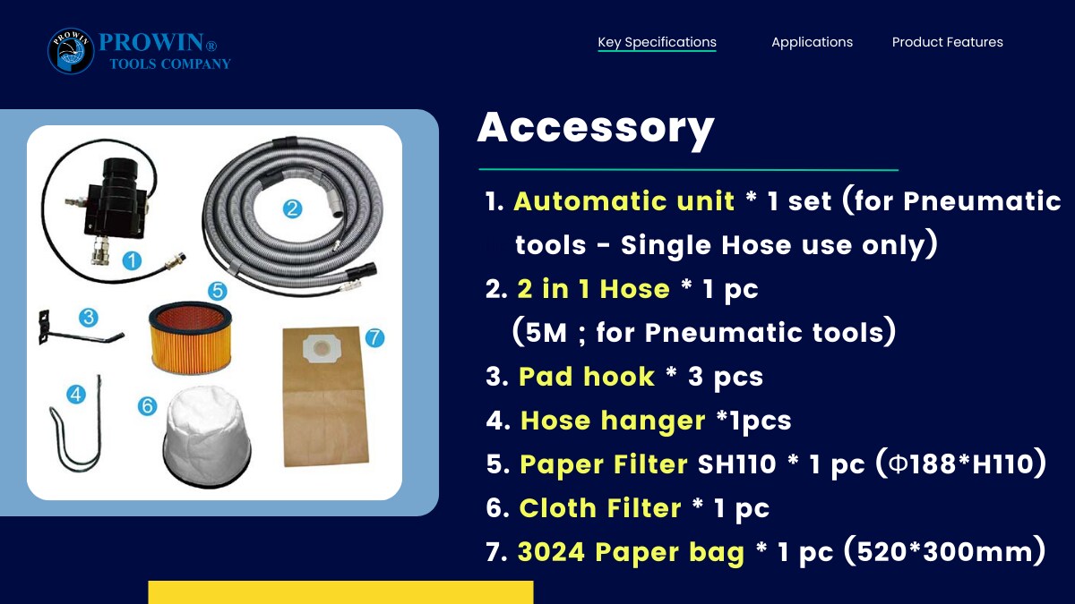 8) 配备5米二合一集尘管。(集尘及空气管合一)。