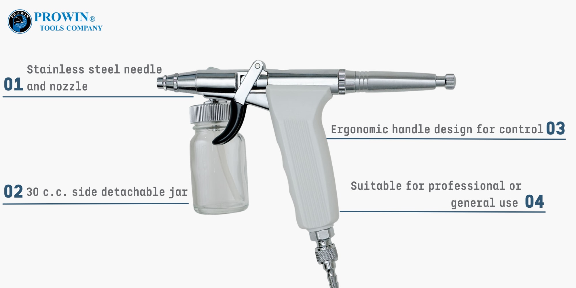 Prowin SG-920GS 吸入式喷枪标准套件包括 30 c.c.包装内的侧面可拆卸玻璃罐,为用户提供方便的绘图和稳定的性能。符合人体工程学设计的手柄提供了方便的可及性,并减少了长期握持造成的不适。适用于艺术、化妆、化妆品、爱好、工艺、汽车、蛋糕装饰、纹身图、指甲等专业或一般用途。Prowin Tools Company 喷枪的喷嘴和针头由不锈钢精密制成,具有卓越的性能和刀具寿命长。