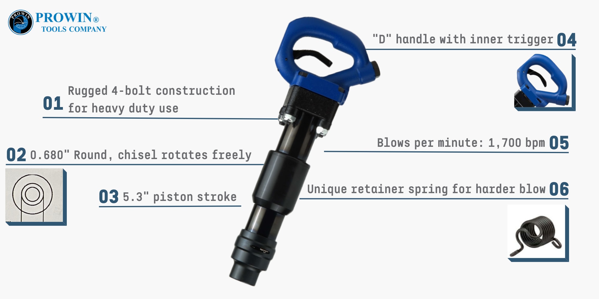 -独特的弹簧固定器作为标准,可在严苛的应用中进行更猛烈的打击