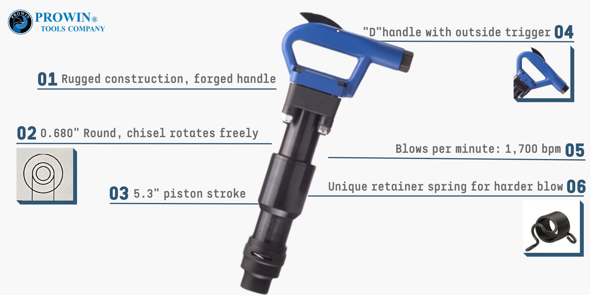 ● 0.680" 圆形,凿子旋转自如