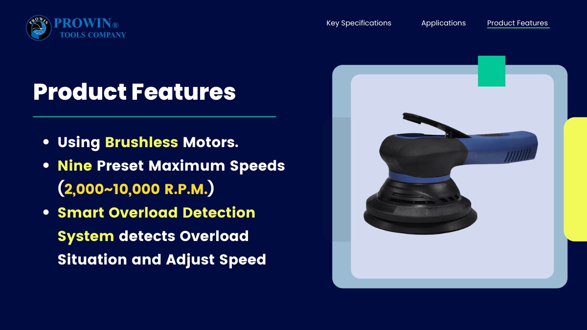 3)该砂光机配备无刷电机,方便细致的调速功能,以及智能过载检测系统。 智能过载检测系统将检测电机的过载情况并随时调整速度和扭矩。