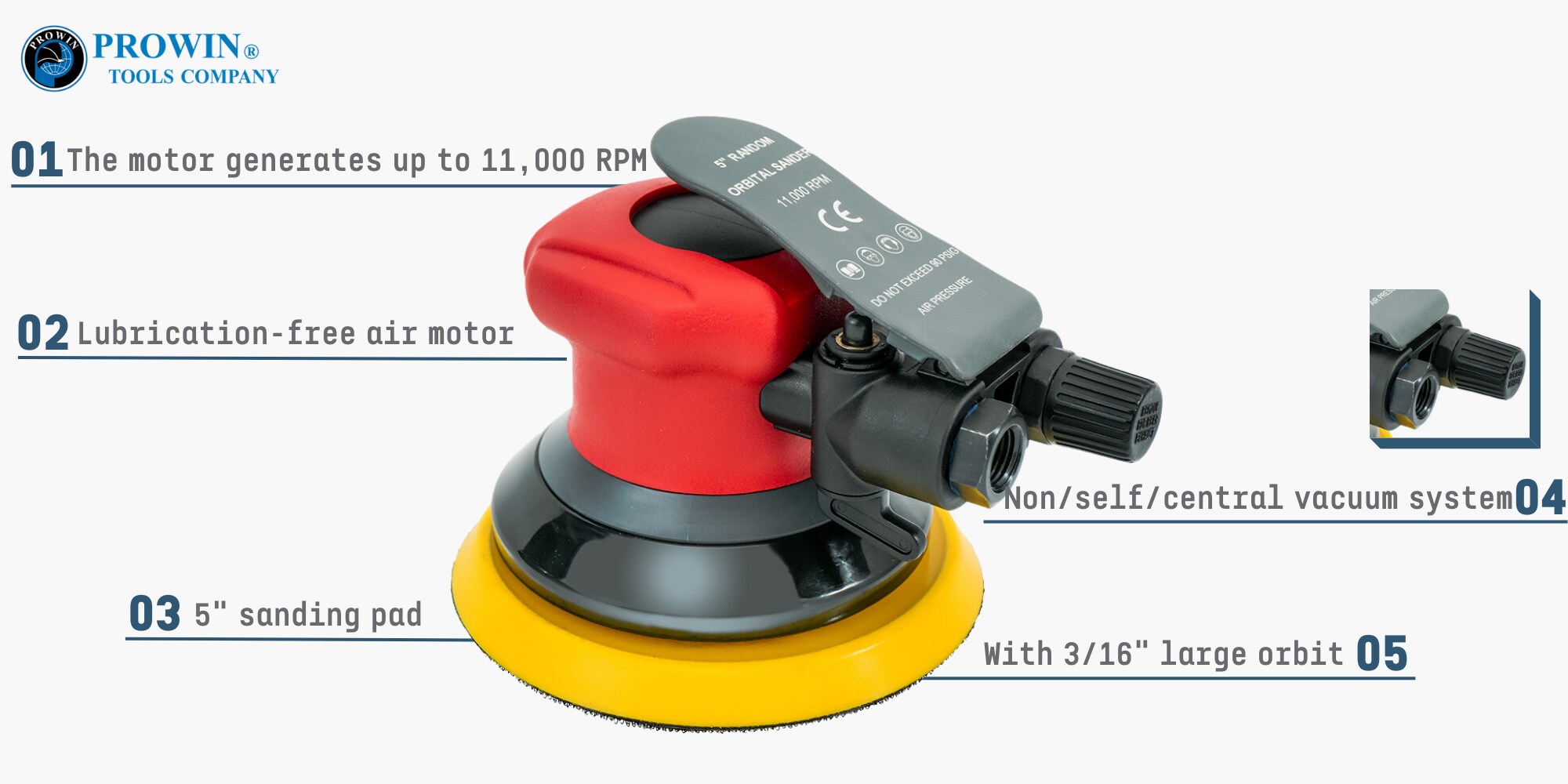 AS-FS103无油手掌砂光机适用范围广,适用于铁、木材、塑料、金属、橡胶、石材、大理石等材料的打磨、精细抛光。 5" 气动轨道砂光机可提供高达 11,000 rpm 的 5mm 轨道,实现无涡流抛光。符合人体工程学的设计可提高舒适度和便利程度。气动空气砂光机配有免润滑气动马达,可实现无油使用。提供非真空、自生和中央真空选项。