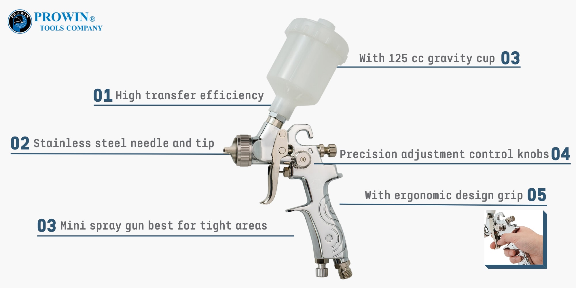 Prowin KR-357M XRP 重力进料微型空气喷枪具有高效性能,可喷涂优质涂料。这款 XRP(HTE) 喷枪非常适合各种汽车饰面,包括清漆,平衡性好且易于操作。 XRP(HTE) 喷枪采用不锈钢针头,使用寿命长。配备 125cc。重力杯,迷你 XRP(HTE) 喷漆枪最适合修补、小面积修补目的。